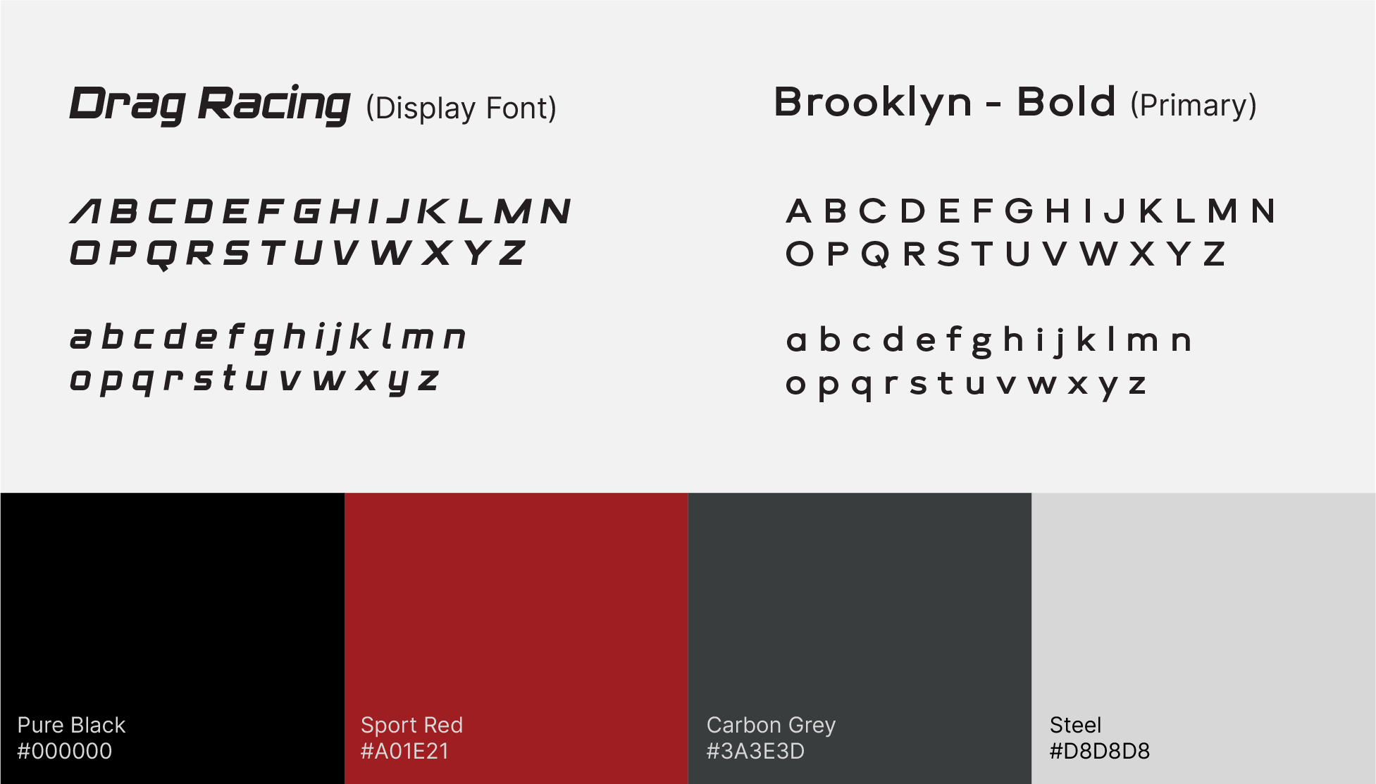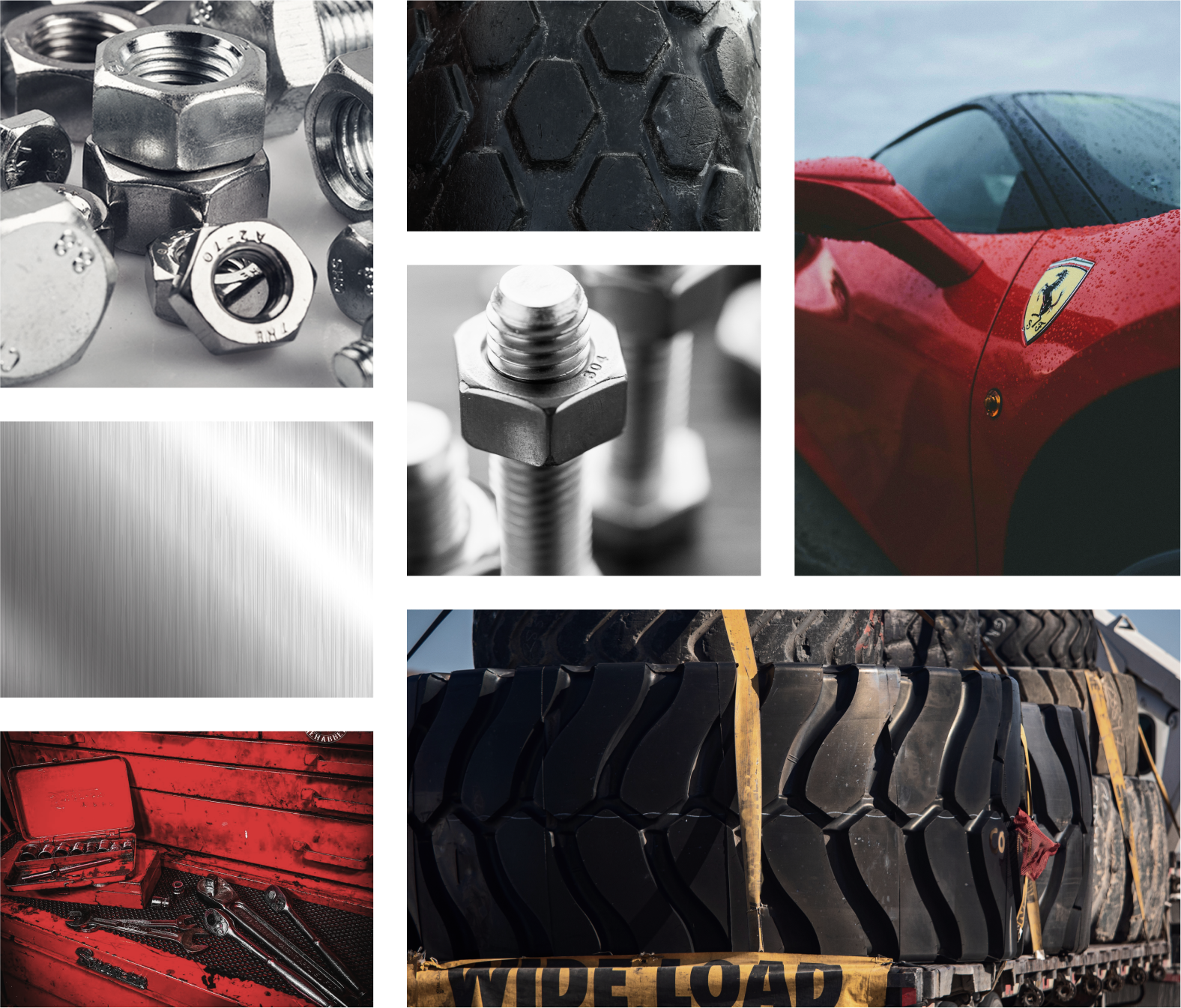 Logo: A custom symbol inspired by the geometry of tire treads and tools like bolts and the box-side of a wrench, balanced with a racing‑style slanted type to suggest speed and mobility.