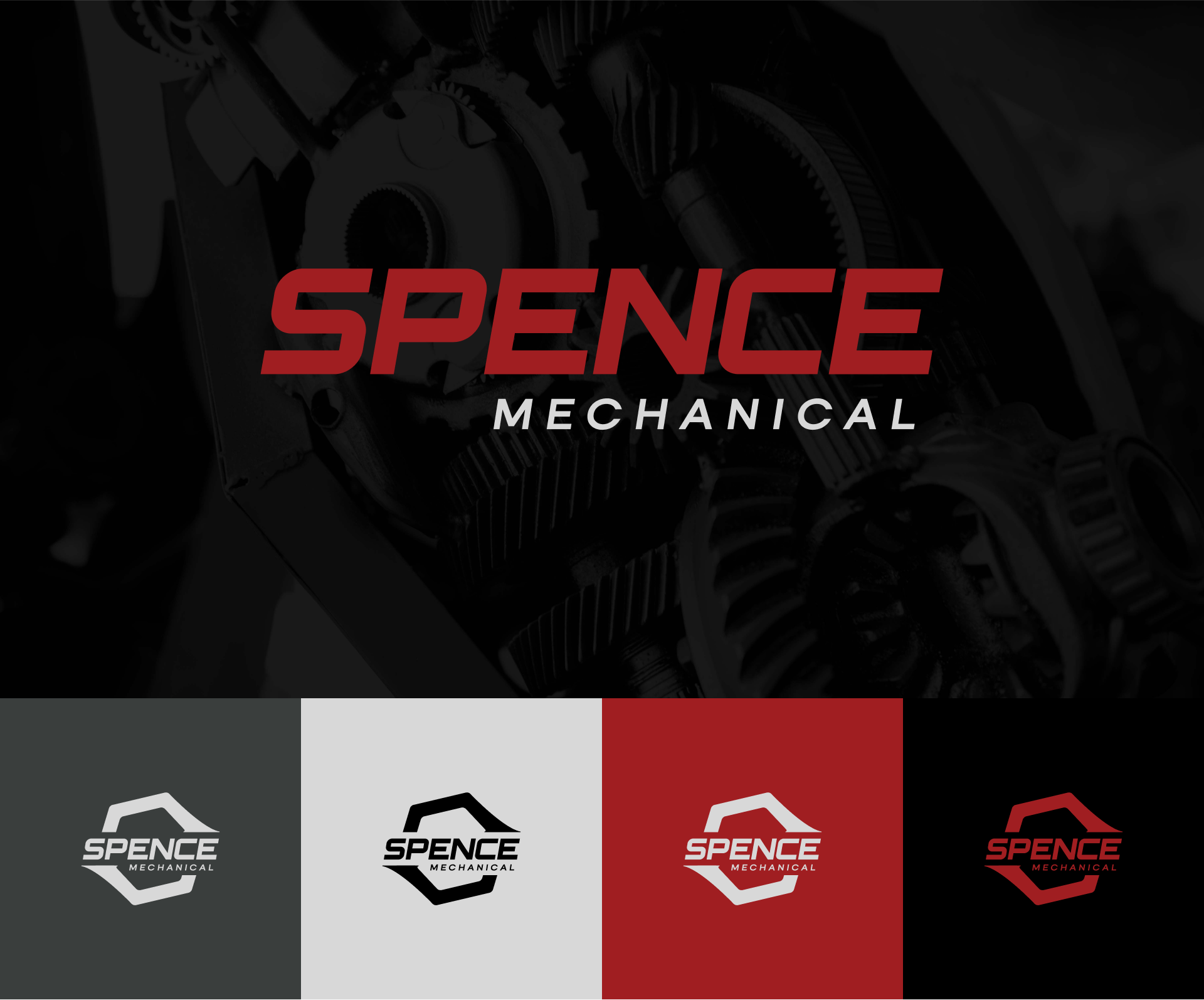 The foundation of the Spence Mechanical identity is a custom logo that draws on geometric forms found in tire treads, bolt heads, and wrench elements, giving it an industrial yet refined feel. Paired with a dynamic, slanted type, the mark conveys efficiency, movement, and reliability — qualities core to the client’s service and reputation.